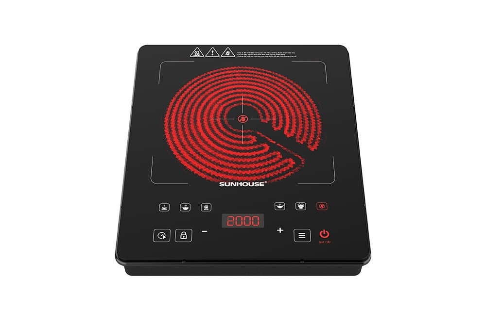 Sản phẩm sử dụng mâm nhiệt hồng ngoại công suất 2000W, giúp gia nhiệt nhanh, nấu chín thực phẩm hiệu quả. Mặt bếp kính chịu nhiệt cao cấp sáng bóng, chịu lực tốt, dễ lau chùi sau khi sử dụng.