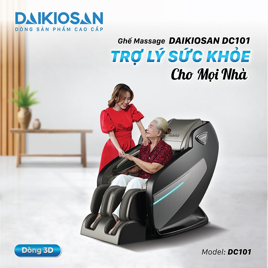 ✨ Ghế Massage Daikiosan DC101 là mẫu ghế massage toàn thân cơ bản – nhỏ gọn – dễ sử dụng đến từ Daikiosan, được thiết kế phù hợp cho gia đình, người lớn tuổi và người có nhu cầu thư giãn nhẹ nhàng hằng ngày.