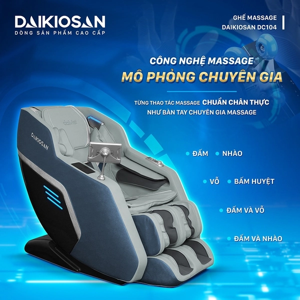 ✨ Ghế Massage Daikiosan DC104 là mẫu ghế massage toàn thân phổ thông – nhỏ gọn – dễ sử dụng đến từ Daikiosan, được thiết kế phù hợp cho gia đình, người lớn tuổi và người cần thư giãn nhẹ nhàng hằng ngày.