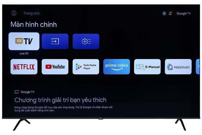 Sản phẩm chạy Google TV thông minh, mang đến trải nghiệm giải trí mượt mà, cá nhân hóa theo người dùng, phù hợp phòng khách lớn, nhà phố, biệt thự, phòng họp.