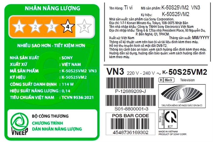 | Năng lượng tiêu thụ | Tiết kiệm điện theo chuẩn Sony |