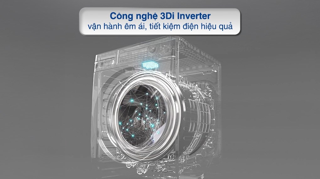 Nhờ động cơ Inverter tiên tiến, máy vận hành êm ái, tiết kiệm điện năng và nước hiệu quả, đảm bảo độ bền cao trong suốt thời gian sử dụng.