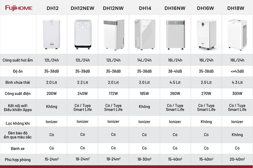 Máy hút ẩm dân dụng Fujihome DH12 – Giải pháp không khí khô thoáng cho mọi gia đình.