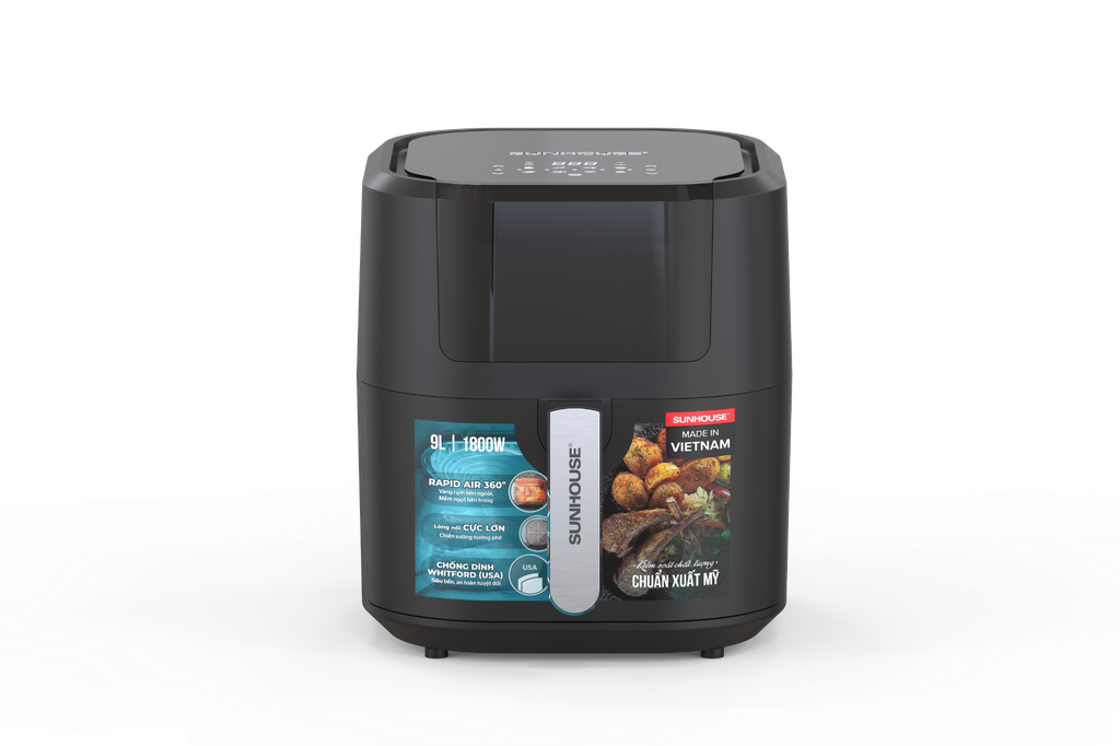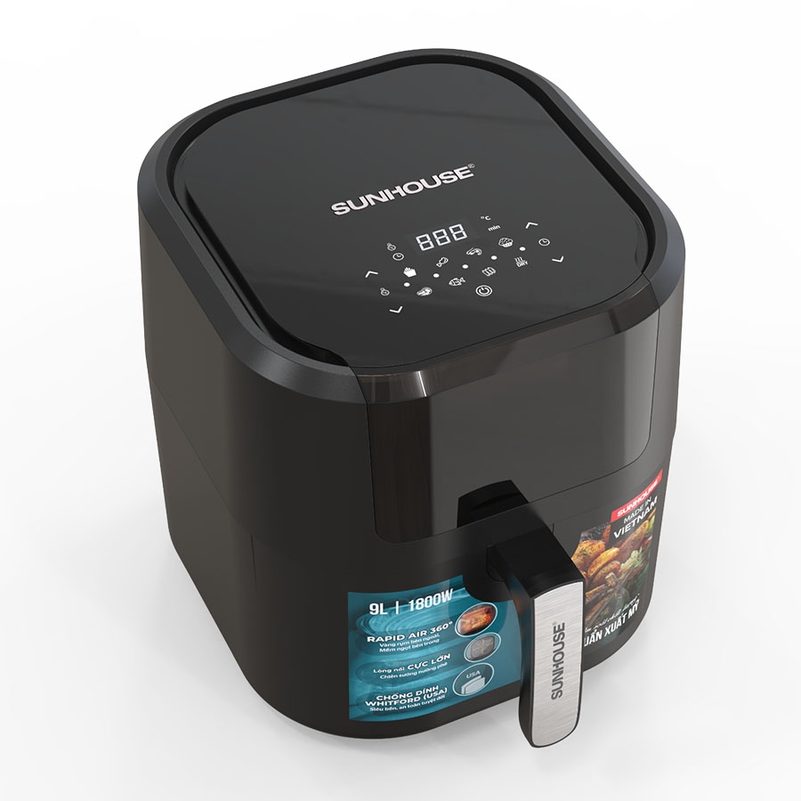 ✨ Nồi chiên không dầu Sunhouse SHD4082 là dòng nồi chiên dung tích lớn 9 lít đến từ Sunhouse, đáp ứng tốt nhu cầu gia đình đông người, tiệc tùng, chế biến thực phẩm số lượng lớn. Sản phẩm giúp chiên – nướng thực phẩm giòn ngon với rất ít dầu mỡ, góp phần bảo vệ sức khỏe.