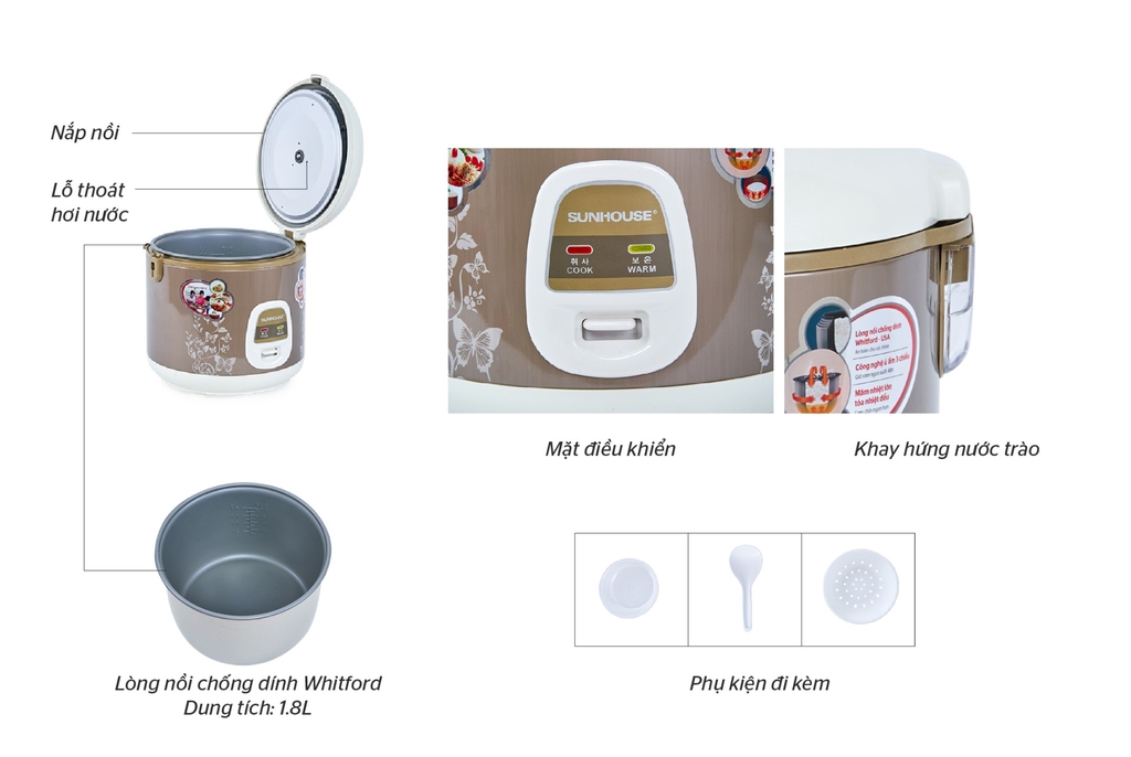 ✨ Nồi cơm điện Sunhouse SHD8616 là dòng nồi cơm điện nắp gài dung tích 1.8 lít đến từ Sunhouse, phù hợp cho gia đình 4–6 người. Sản phẩm nổi bật với thiết kế bền chắc – nấu cơm nhanh – dễ sử dụng – tiết kiệm điện.