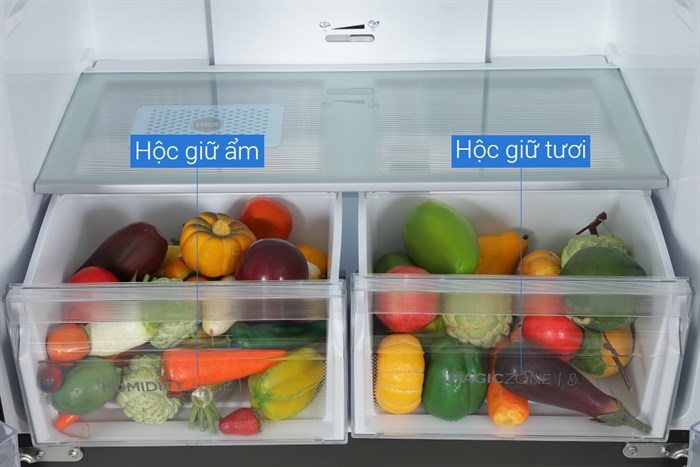 Hệ thống cân bằng độ ẩm HCS giúp duy trì độ ẩm lý tưởng cho rau củ, tránh khô héo.